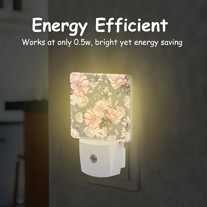 - 【Dusk to Dawn Sensor】This Pink Flowers and Grey Leaves night light plug wall is equipped with a light sensor that automatically turns on at dusk or dim light and turns off at dawn or when there is sufficient light.Its smart design saves power and eliminates the need for manual switching