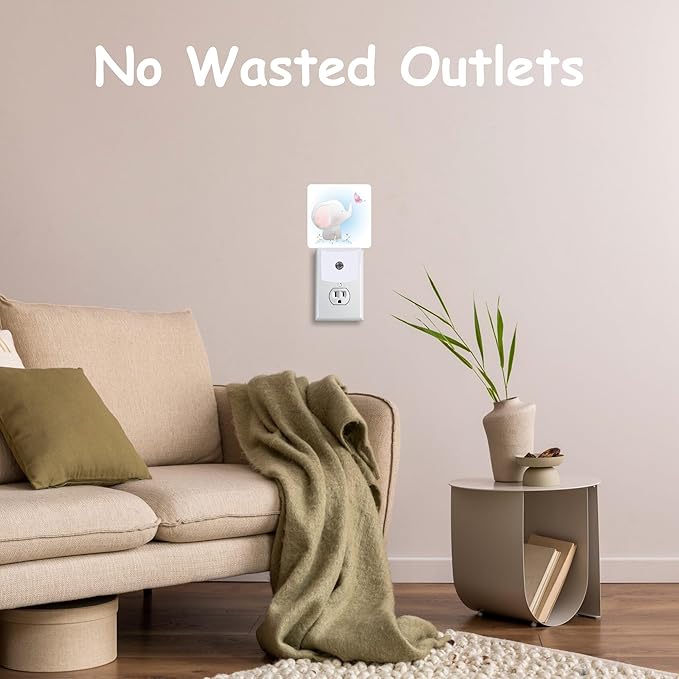 - 【Dusk to Dawn Sensor】This Cute Baby Elephant Play Butterfly night light plug wall is equipped with a light sensor that automatically turns on at dusk or dim light and turns off at dawn or when there is sufficient light.Its smart design saves power and eliminates the need for manual switching