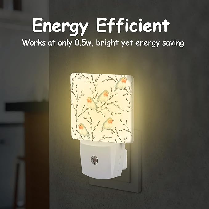- 【Dusk to Dawn Sensor】This Teal Orange Robin Birds on Willow Branches night light plug wall is equipped with a light sensor that automatically turns on at dusk or dim light and turns off at dawn or when there is sufficient light.Its smart design saves power and eliminates the need for manual switching