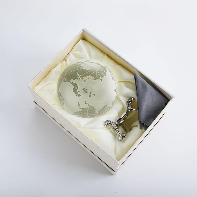 - Glass world globe: The crystal world globe paperweight is made of high quality K9 crystal.