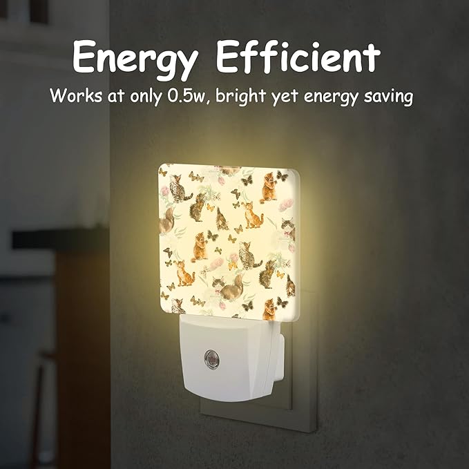 - Dusk to Dawn Sensor:This Cute Cats Butterflies night light plug wall is equipped with a light sensor that automatically turns on at dusk or dim light and turns off at dawn or when there is sufficient light.Its smart design saves power and eliminates the need for manual switching