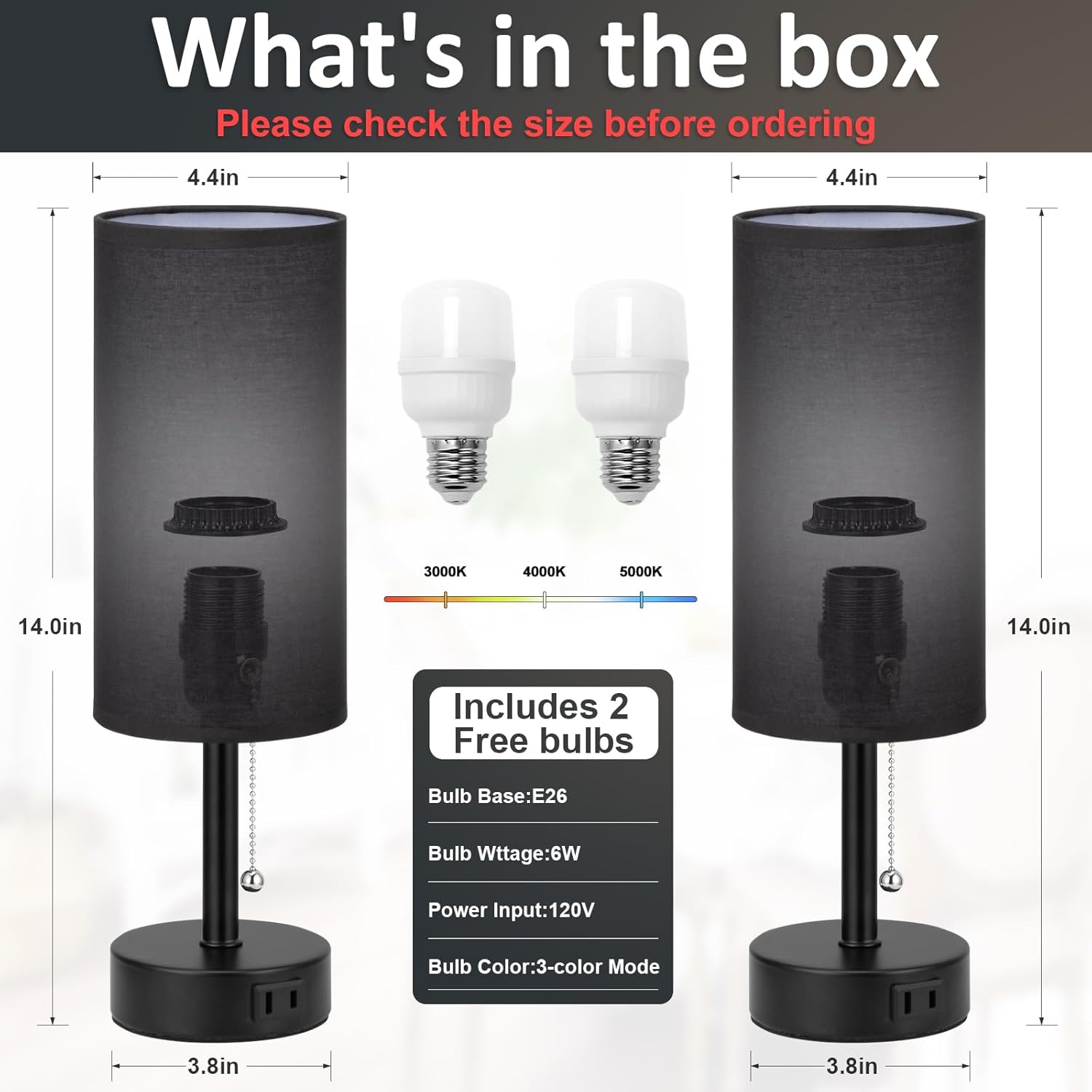 - Two Pull Chain Lamps Perfect For Home Decor - The small round lamps set of 2 is constructed with a fabric shade that filters light, softening the illumination while reducing glare and reflection to protect your eyesight. The compact round design(14.0 x 4.4 x 3.8 inches), which blends with the stylish zipper, is both space-saving and compatible with a variety of decorative styles. This mini lamp with outlet is suited to the decoration of bedrooms, living rooms, kid's rooms, guest room, etc