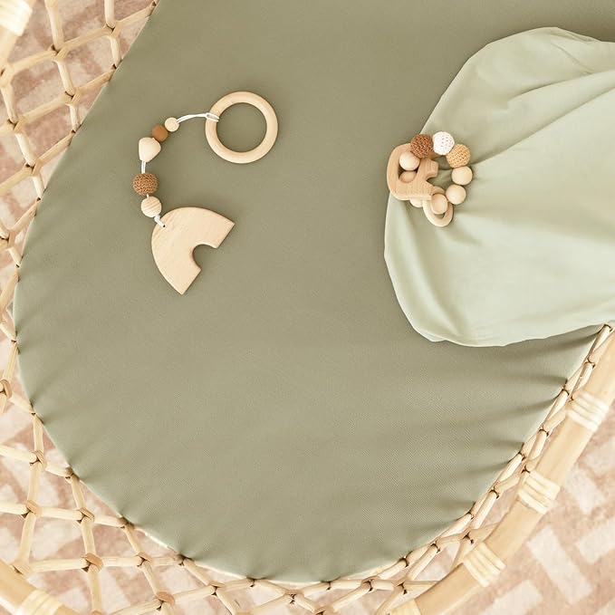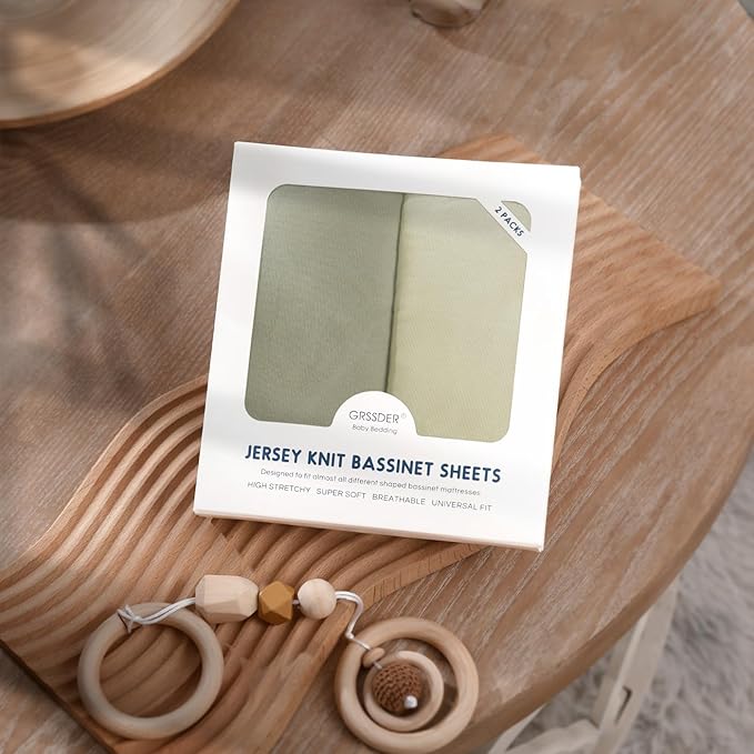 GRSSDER Stretchy Ultra Soft Fitted Bassinet Sheet 2 Pack, Universal Fit for Bassinets Baby Cradle Moses Basket Oval Rectangle Mattress Safe and Snug, Jersey Bassinet Sheets for Girls, Sage