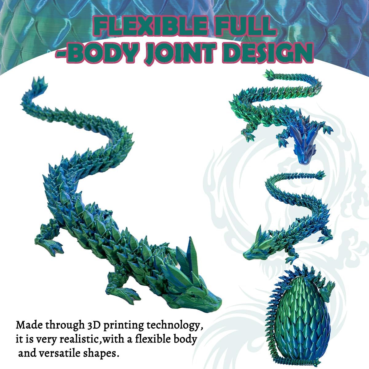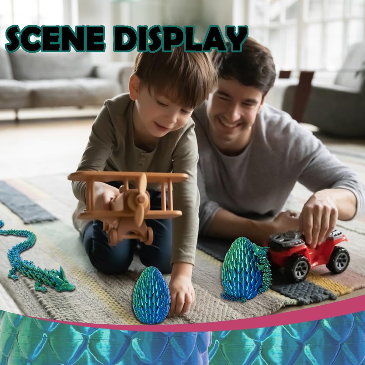 Dragon Eggs with Dragon Inside, 12In Laser Blue Green 3D Printed Dragon Egg Fidget Toy, Executive Desk Articulated Dragon Toy, Home Office Decor