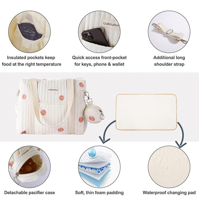 - COMPLETE 3-PIECE DIAPER BAG SET WITH MATCHING ACCESSORIES – Premium cotton diaper bag tote includes matching waterproof changing pad and coordinating pacifier case. This complete baby essentials kit provides everything new parents need in perfectly coordinated style. Perfect hospital bag for labor delivery and newborn care.