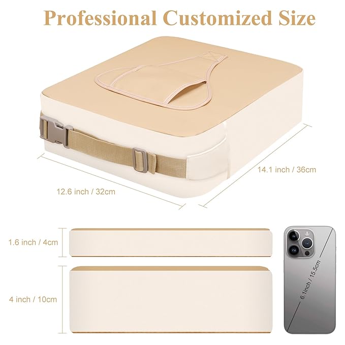 - 【Booster Seat Suitable Size】The baby booster seat has a backrest size of 14.1x12.6 x 1.6 inches and a cushion size of 14.1 x 12.6 x 4 inches, specifically designed for most dining seats. At the same time, the length of the bottom seat belt is appropriately increase, so the cushion can be better fixed on the most dining chair.