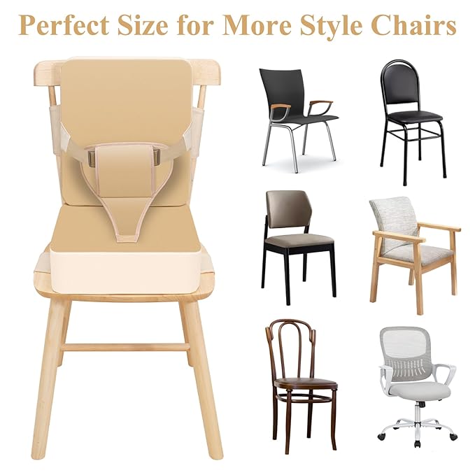 - 【Upgrade Booster Seat for table】Compared to other single booster seats, our kitchen chair booster seat adds a backrest cushion, helping them maintain proper sitting posture. the three-point protection design safety straps and buckets at the front of the cushion to give your kids a more comfortable and safer protection. Enjoy mealtime with your kids worry-free!