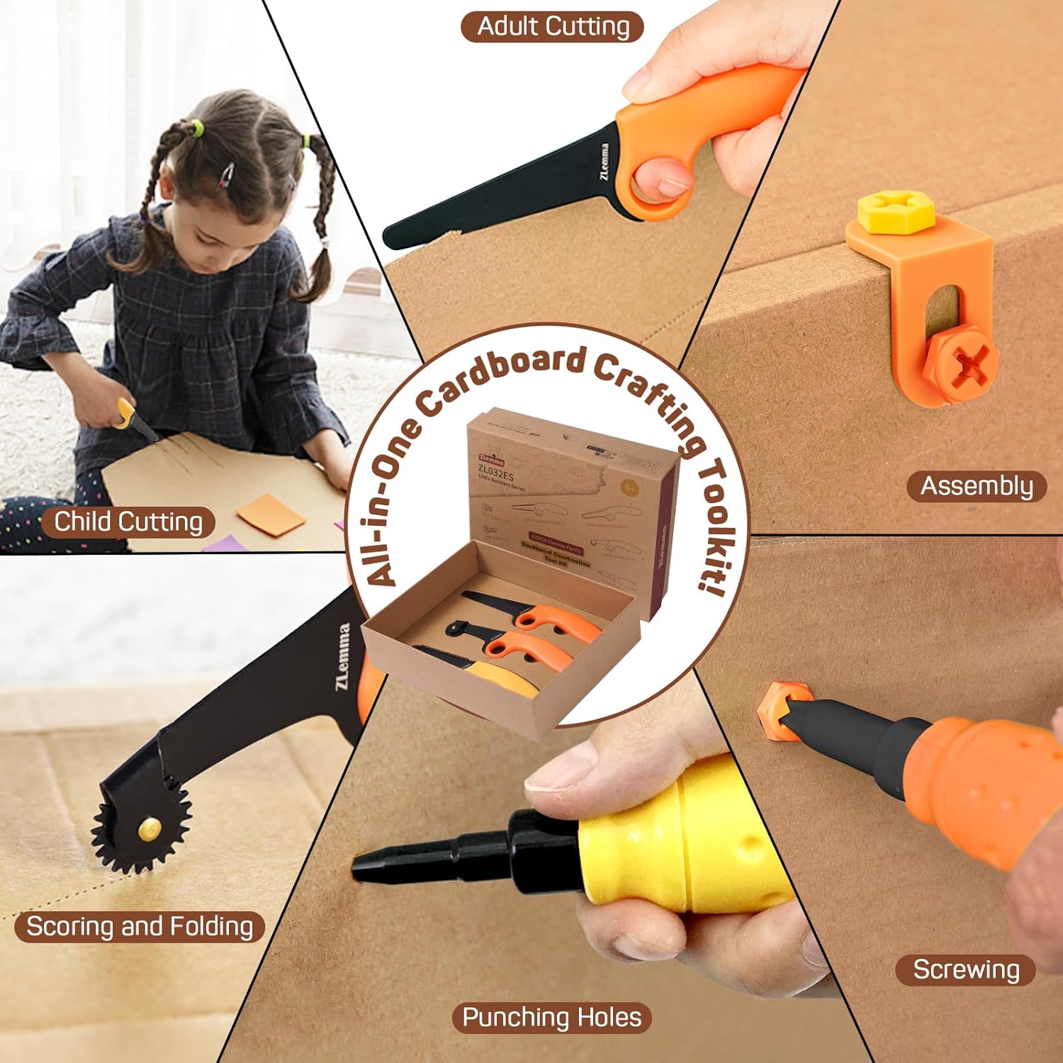 - 【Comprehensive 425-Piece Craft Tool Set】 Includes 7.5-inch and 6.2-inch safe cardboard cutter, a scoring wheel, a safe bamboo holepunch, and a safe screwdriver, covering all aspects of cardboard crafting. It offers a comprehensive solution for creating projects like cardboard castles and corrugated cat forts efficiently.