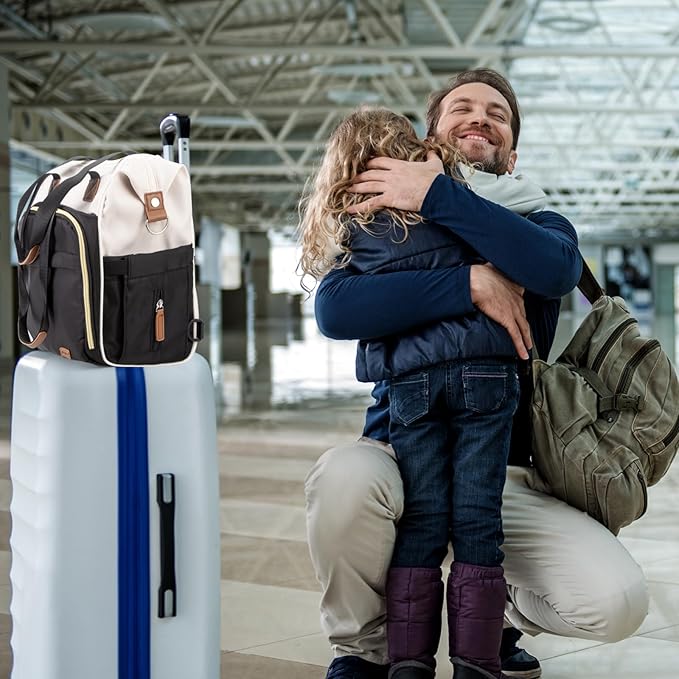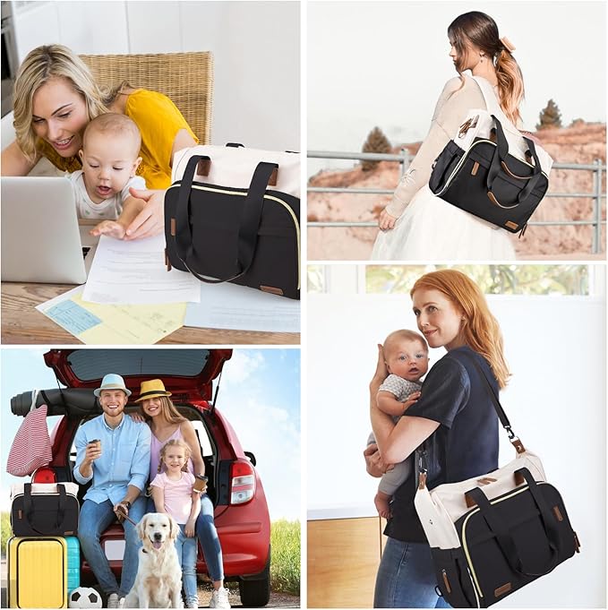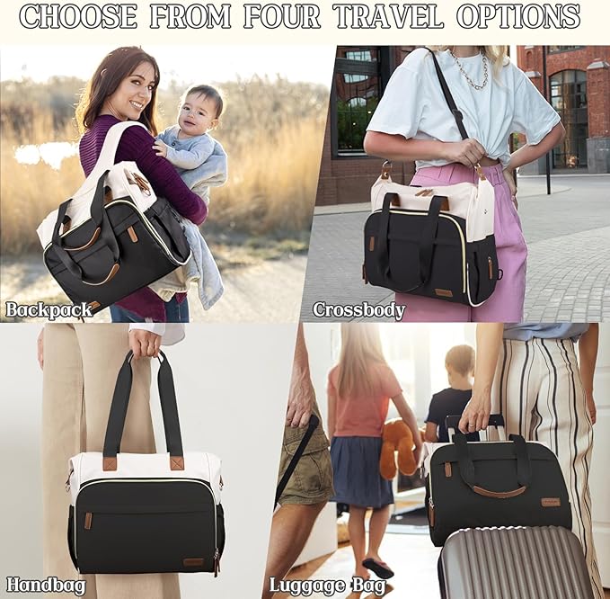 - BLACK & BEIGE 4 IN 1 MOMMY DIAPER BAG : Designed to liberate our hands, multi-functional convertible Pripher diaper backpack seamlessly transforms into five different styles: crossbody bag, shoulder bag, backpack, handbag, and stroller bag. Strap is adjustable and removal, backpack strap can be hidden in the back pocket. Stay stylish and organized on-the-go with this essential accessory.