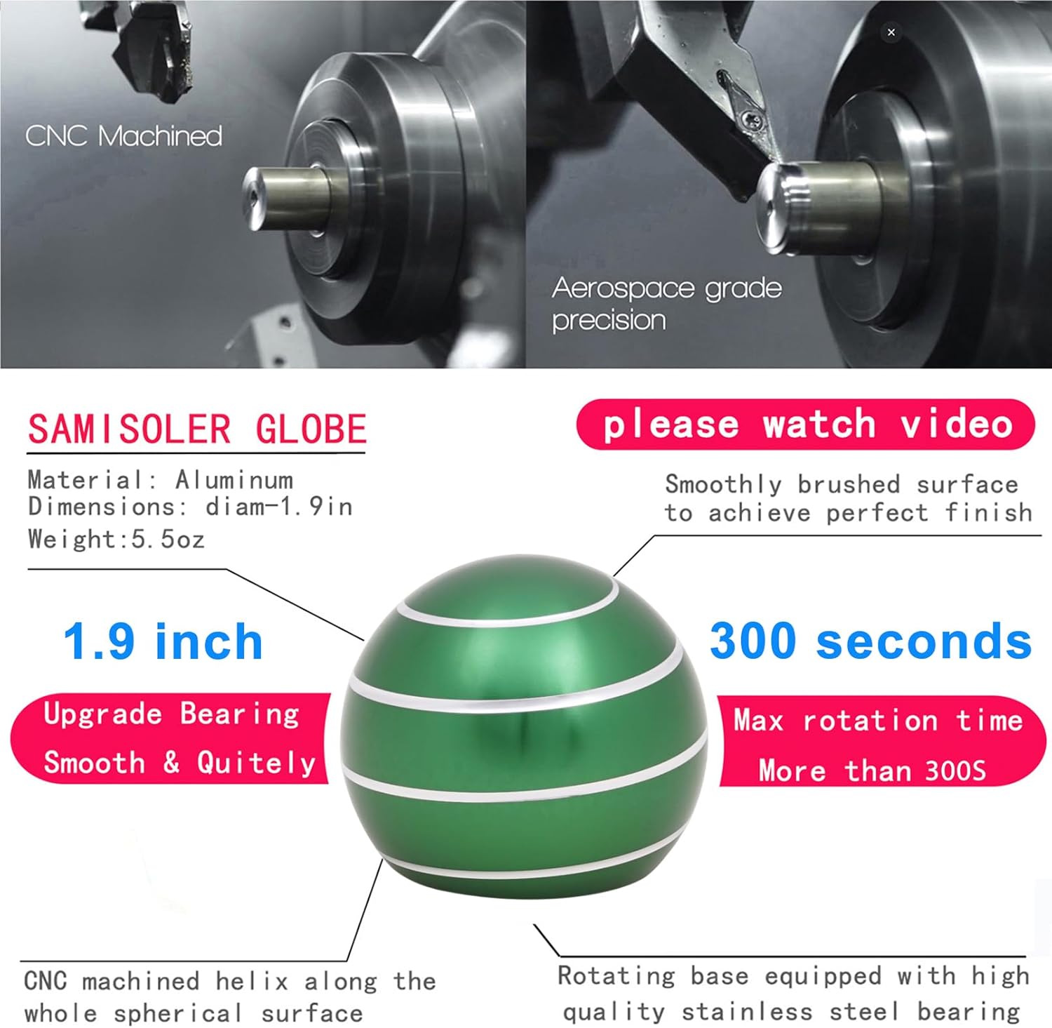 • 【Please watch video】1.9" Size fidget-toys, Aluminum metal and machined by CNC. High-quality made.Spinning Up 300 Seconds.