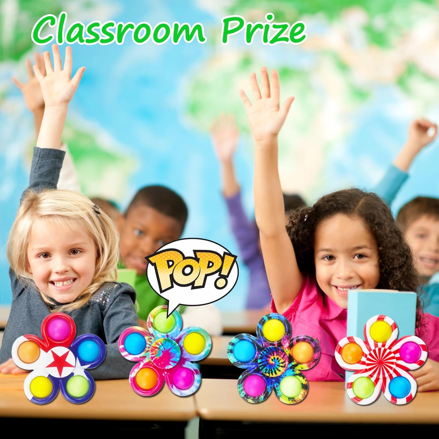- 【2 in 1 Unique Design Fidget Spinner】It includes 50pack 2 in 1 pop fidget toys with 10 different kinds of vivid color patterns. It is not only a pop bubble toy, but also a fidget spinner. Pressing the bubble on any side will make a pleasant stress reliving "POP" sound.