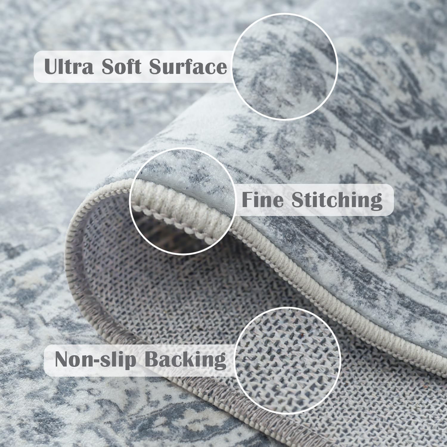 jinchan Runner Rug 2x6 Washable Hallway Runner - Vintage Floral Non Slip Low-Pile Soft Thin Kitchen Rug Distressed Carpet for Farmhouse Bedroom Entryway Laundry Room(2x6ft,Grey)