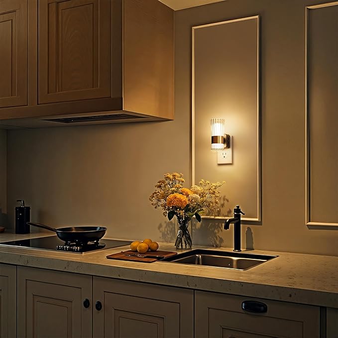 - Modern Night Light: This sleek plug in night light upward and downward with an elegant gold ring, it adds sophistication and style. Ideal for bathrooms, living rooms, and hallways, this LED night light combines functionality with a chic, modern aesthetic.