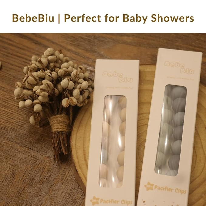 2 Pack Pacifier Clips, Silicone Pacifier Clip for Baby Boys and Girls, Baby Pacifier Strap with Silicone Beads, Soother Dummy Holder, Pacifier Holder, Keeps Pacifier Clean (Beau/Sage)