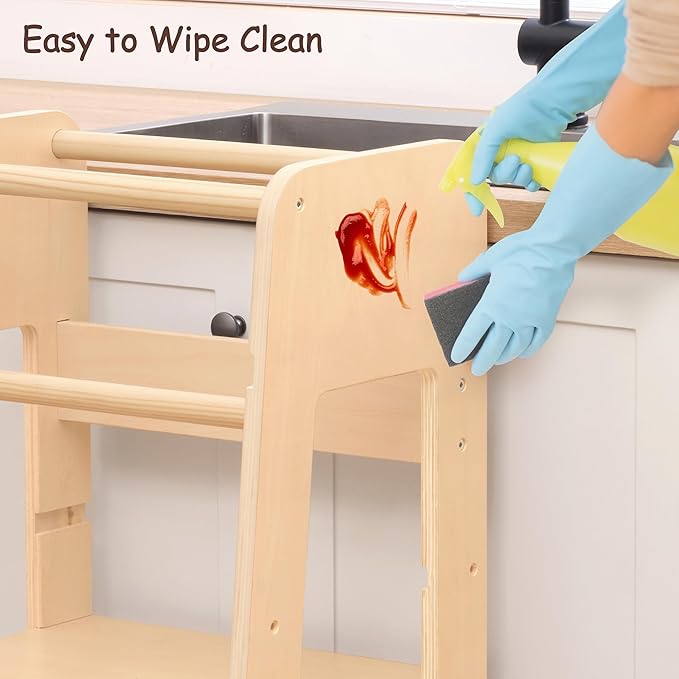- Grows With Your Child — 3-step platform (10 in / 14 in / 18 in) lets little chefs wash dishes, prep snacks or brush teeth at counters 33–37 in high.