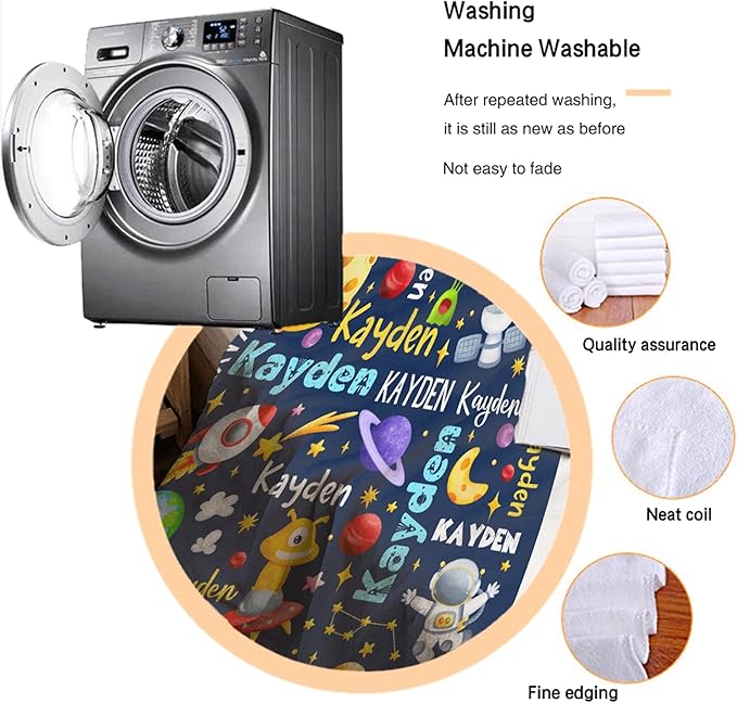 • 【Reminder】 Clear cute pattern with vivid colors expresses the pattern content of custom baby Planet Astronaut very well. This blanket is printed on one side, the unprinted side is white. If you have any questions about the personalized name blanket, please feel free to contact us Contact us and we will resolve the issue immediately.