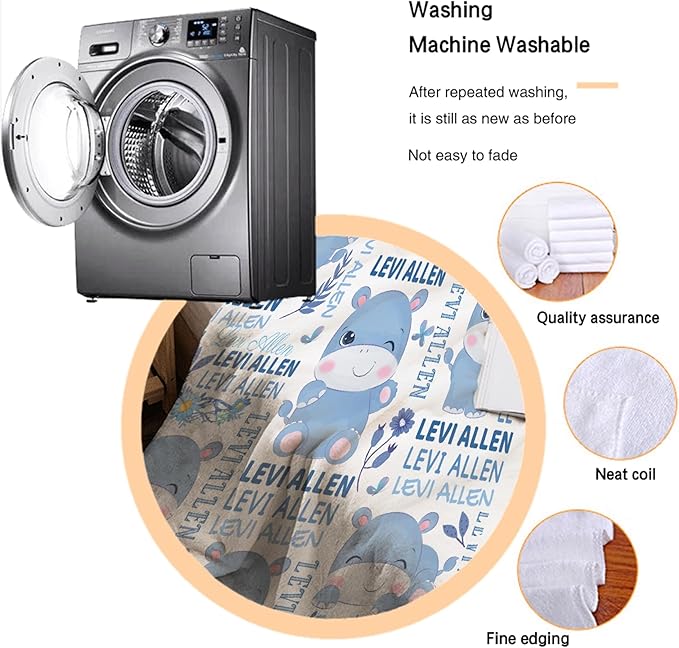 - 【Reminder】 Clear cute pattern with vivid colors expresses the pattern content of custom baby Hippo very well. This blanket is printed on one side, the unprinted side is white. If you have any questions about the personalized name blanket, please feel free to contact us Contact us and we will resolve the issue immediately.