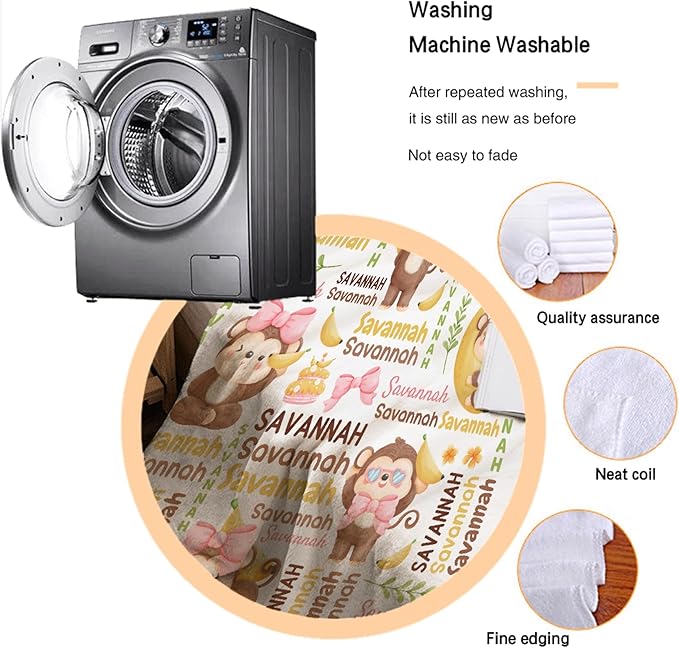 • 【Reminder】 Clear cute pattern with vivid colors expresses the pattern content of custom baby Monkey very well. This blanket is printed on one side, the unprinted side is white. If you have any questions about the personalized name blanket, please feel free to contact us Contact us and we will resolve the issue immediately.