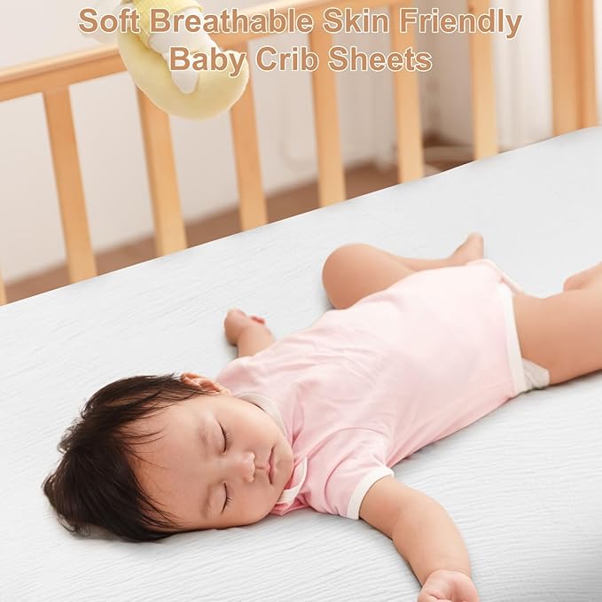 - EASY TO USE DEEP POCKET WHITE CRIB SHEETS: With 9" deep pockets, our muslin crib sheets ensure a secure and snug fit for standard crib mattresses (28"x52"), prevent bunching or slipping during the night. Quick and hassle-free sheet changes for parents