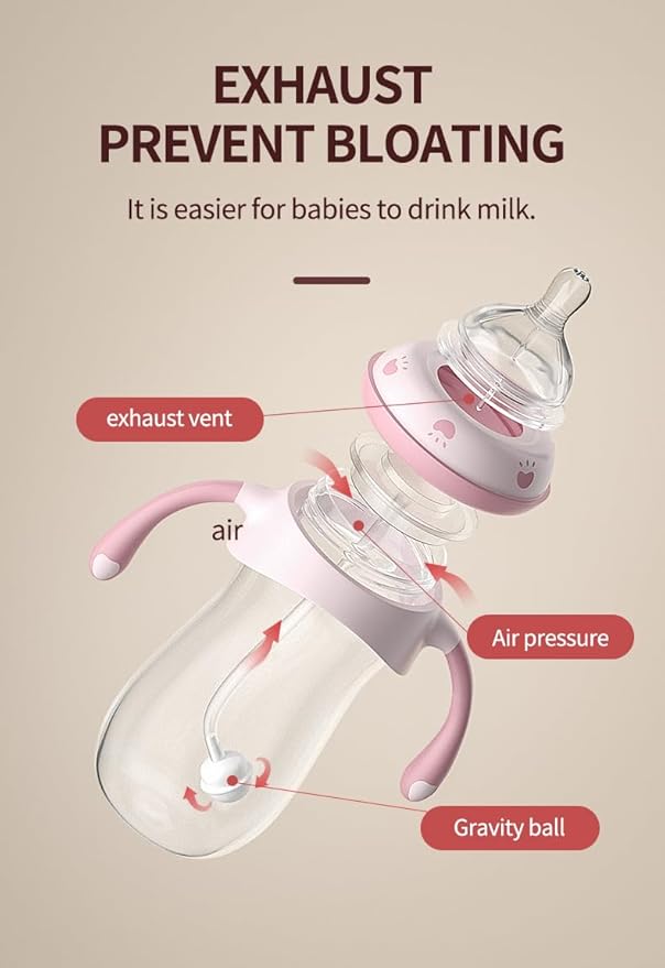 - Anti-Colic Baby Bottle — A vented valve on the nipple prevents your baby from swallowing air and helps to reduce colic, spit-up, and burping during feeding.