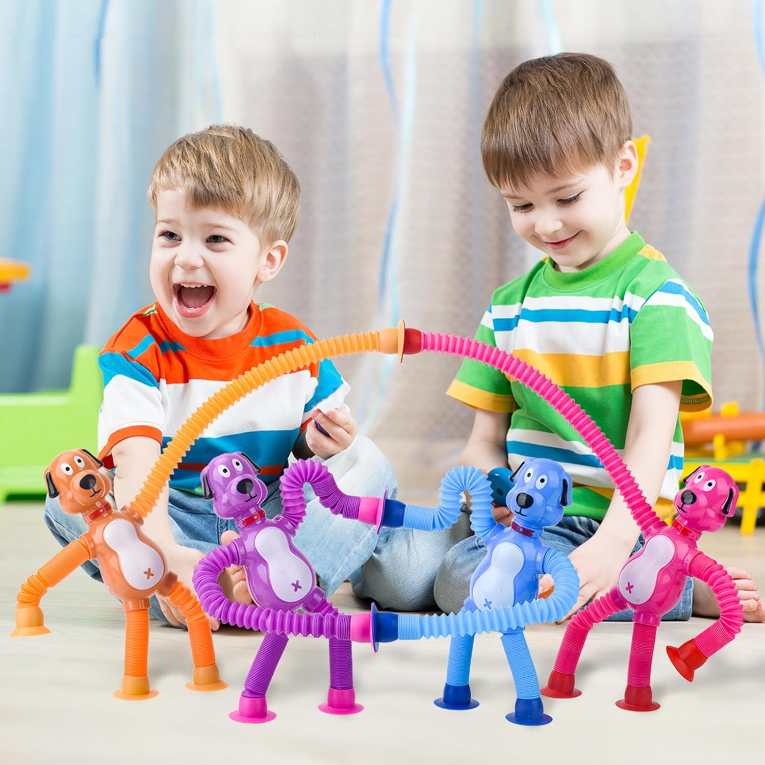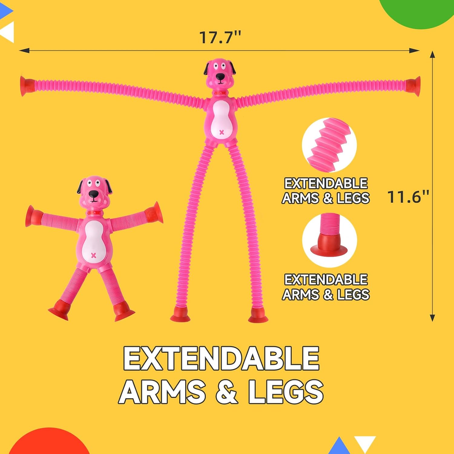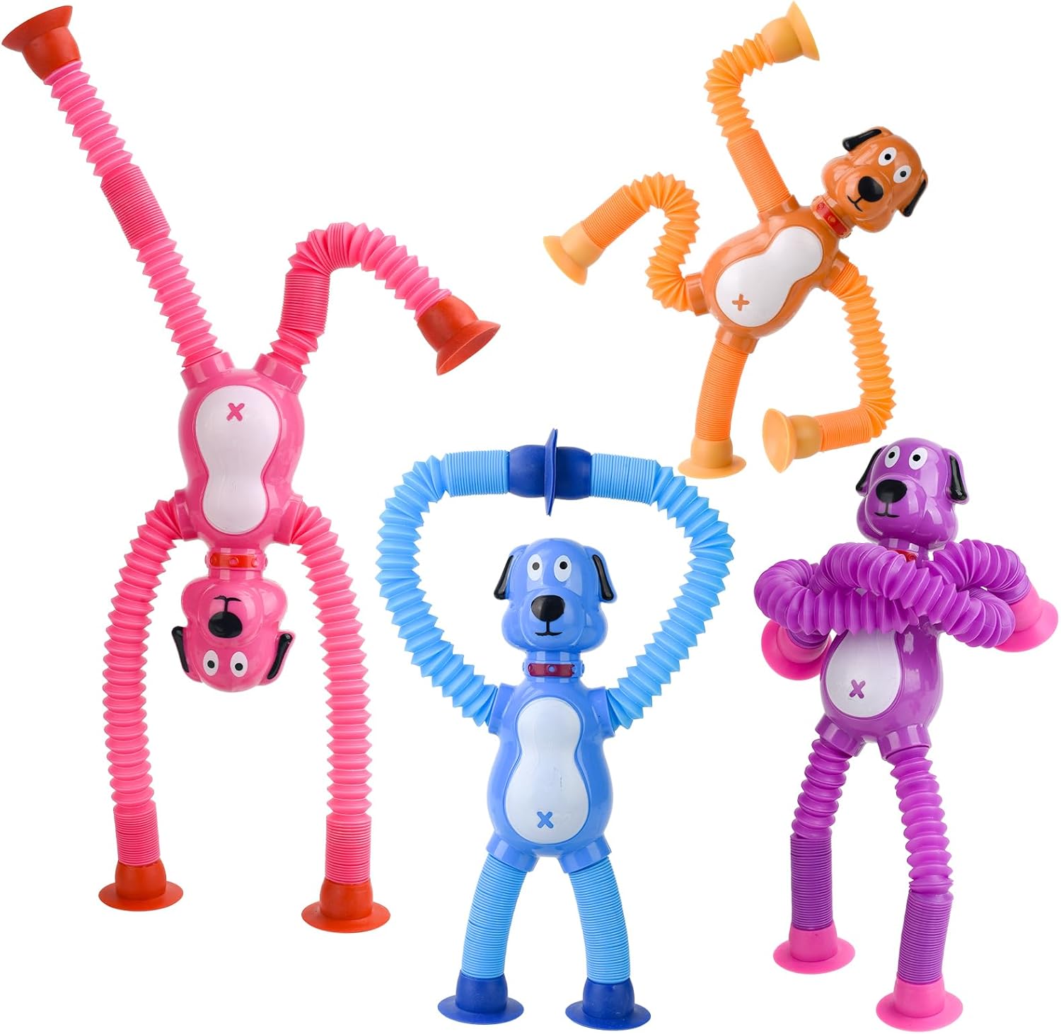 4 Pack Suction Cup Dog Fidget Toy Telescopic POP Tube Toddler Sensory Toys Fine Motor Skills Learning Toddler Toy for ADHD & Autism for Kids Gifts Christmas Toddler Stocking Stuffers