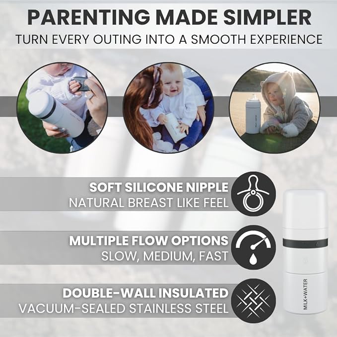 - KEEPS WATER WARM & FORMULA FRESH: MIX WHEN READY - The insulated stainless steel baby bottle is double vacuum-sealed to keep water warm up to 8 hours and formula fresh in a separate formula dispenser attached above. Simply twist to release the powder, then shake to mix, and feed your baby warm, fresh formula.