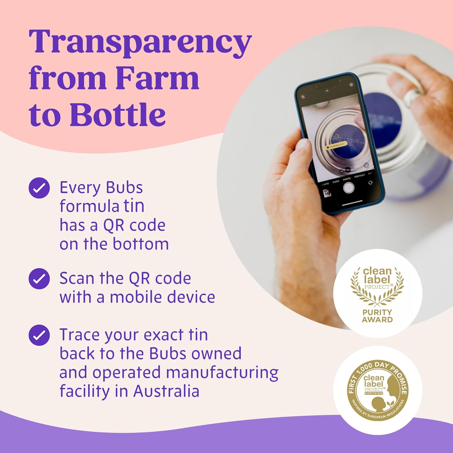 - GOODNESS FROM THE FARM: Bubs Easy-digest goat milk Follow-On Formula Stage 2 is suitable for sensitive tummies, securely formulated non-GMO, with no artificial colors, flavors, or preservatives, and selected for Clean Label Purity Award