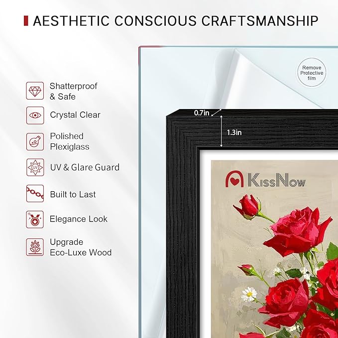 - Crystal Clear Display: With KISSNOW's exclusive HD non-glare plexiglass, redefine how you preserve your pictures. House your perpetual memories in a UV-free, safe, and shatter-resistant elegance.