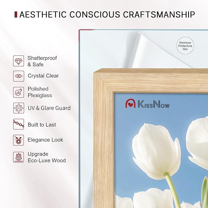 - Crystal Clear: Redefine photo preservation with KISSNOW's exclusive HD non-glare plexiglass. House UV-free, perpetual memories in a safe and shatter-resistant elegance.