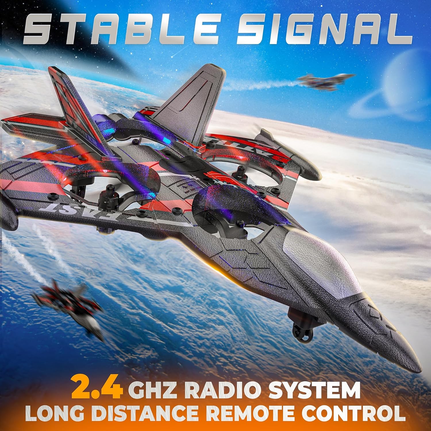 BEZGAR Drones for Kids | 2.4GHZ RC Plane, Remote Control Airplane, RC Helicopter, 360° Flip Fighter Jet Toy, Toys for ages 8-13 with Colorful LED Navigation Lights Red