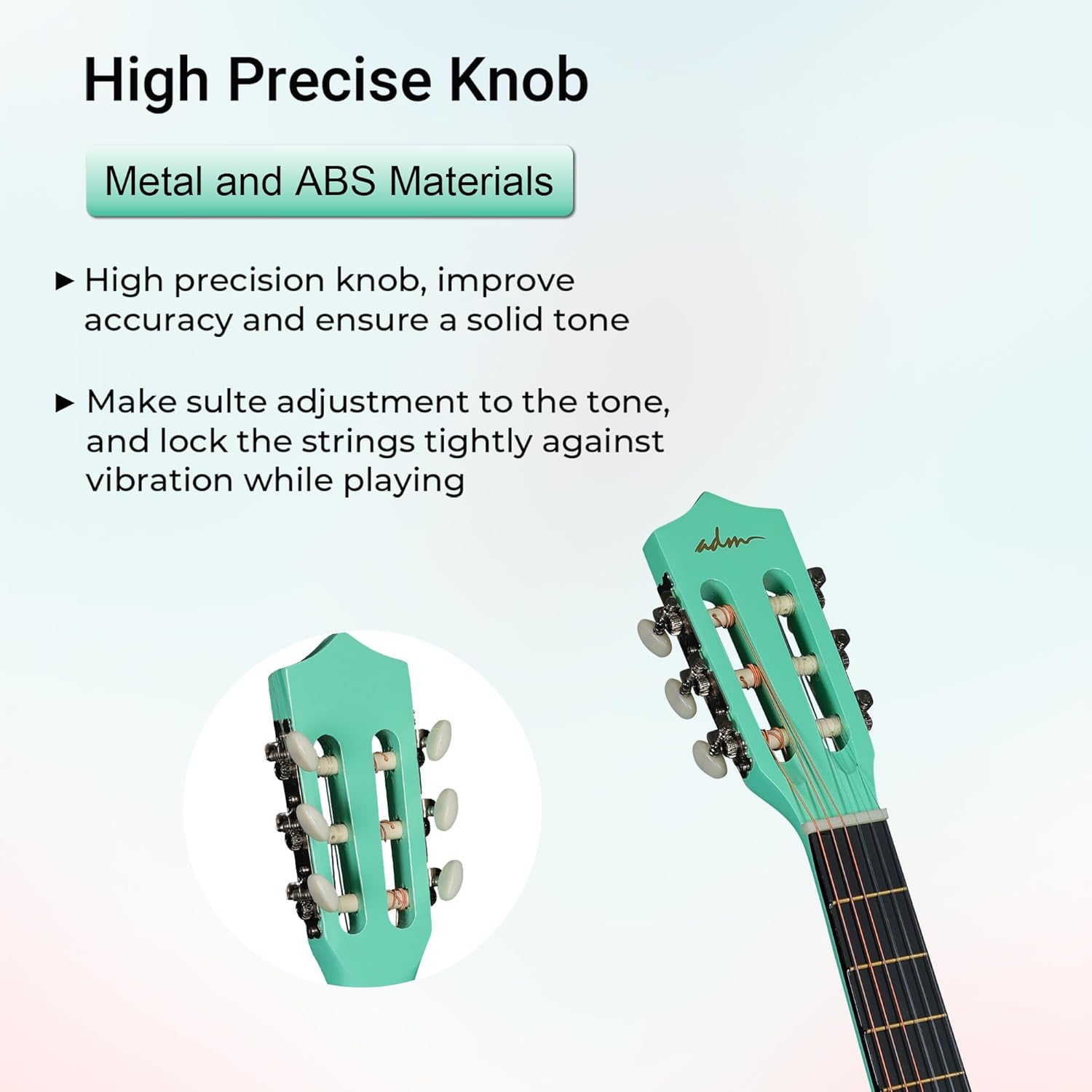 ADM Beginner Acoustic Classical Guitar 38 Inch Nylon Strings Wooden Guitar Bundle Kit for Kid Boy Girl Student Youth Guitarra Online Lessons with Gig Bag, Strap, Tuner, Strings, Cyan Green