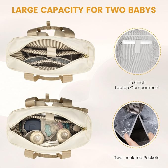 - More than one diaper bag: Can be used as a backpack, handbag, shoulder bag, elegant, suitable for shopping, travel and many other occasions. The practical and neutral design makes this diaper bag backpack perfect for traveling with your boys and girls two kids.