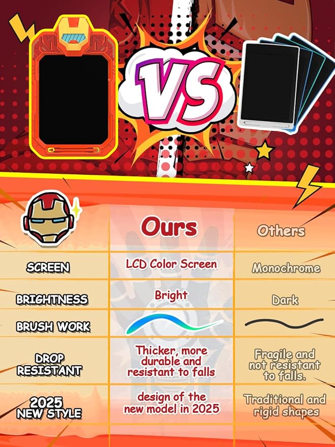 - 【With a cool and stylish design】 featuring our iconic heroes like Spider-Man, Captain M, Mecha Heroes in action, and the mighty Hulk, this toy is an ideal learning companion for boys and girls aged 3, 4, 5, and 6. It serves not only as a graffiti board brimming with creative inspiration but also as a painting board full of endless fun.