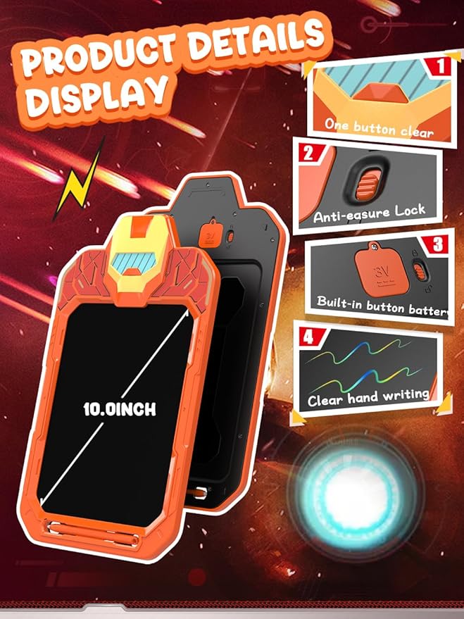 LCD Writing Tablet Doodle Board 10 Inch, Colorful Drawing Pad, Electronic Drawing Tablet, Drawing Pads,Travel Gifts for Kids Ages 3 4 5 6 7 8 Year Old Girls Boys (Mech Warrior)