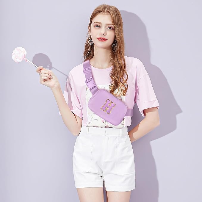 Gitus Gifts for 8 9 10 11 12 Year Old Girls Belt Bag Fanny Pack Crossbody Bags with Initial Letter Patch Cute Stuff Birthday Gifts for Teen Girls Women Personalized Trend Stuff (Lavender-H)