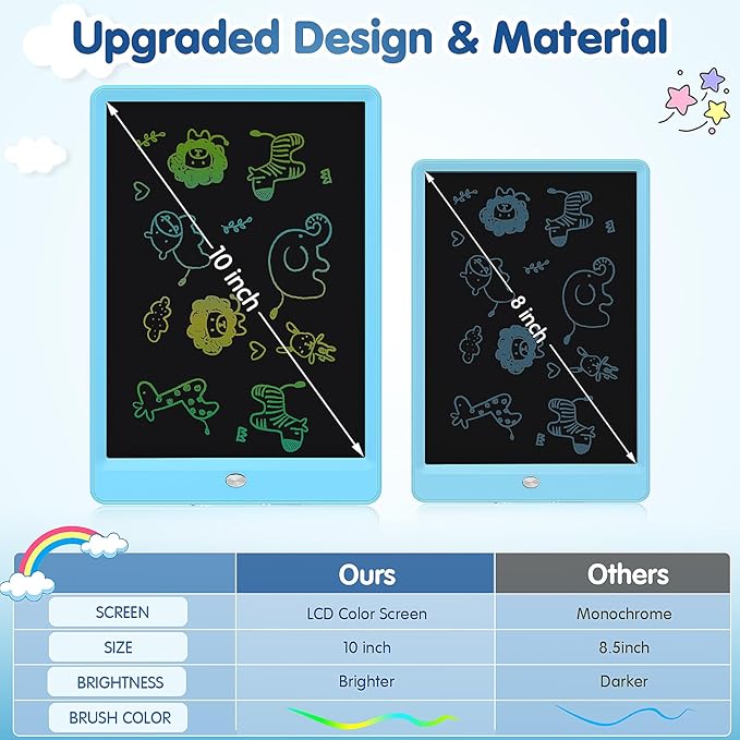 10 Inch Drawing Tablet, LCD Writing Tablet for Kids, Colorful Doodle Board Toddler Drawing Pad, Educational Learning & Travel Essential Kid Toy for 3 4 5 6 7 8-Year-Old Girls Boys (Blue)