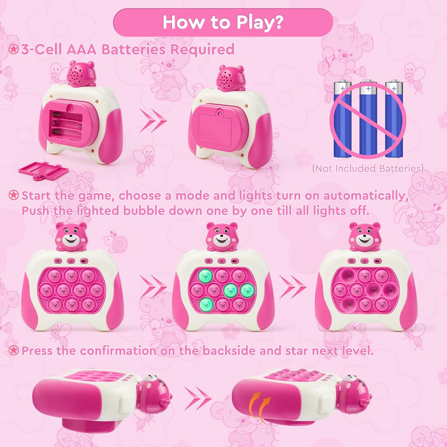 Quick Push Fidget Toy for Kids Adults, Fast Speed Pushing Game Console, Handheld Push Bubble Stress Relief Toy Bear-Pink