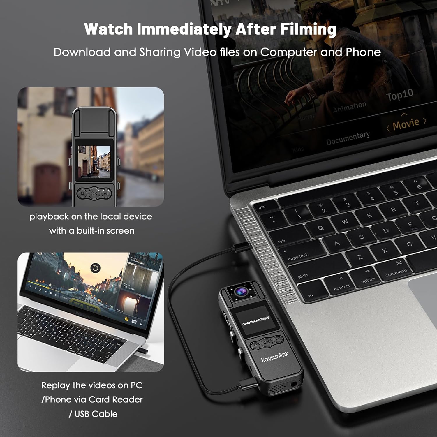 - 【Multifunctional Application】Kaysunlink Mini Body Camera is lightweight & compact,It can be used almost anywhere, Climbing, skiing, cycling, hiking, surfing. It's portable that can either be clipped on your backpack or put in your pocket. Perfect for Hiking, Driving Record, Meeting Record,Outdoor sports.