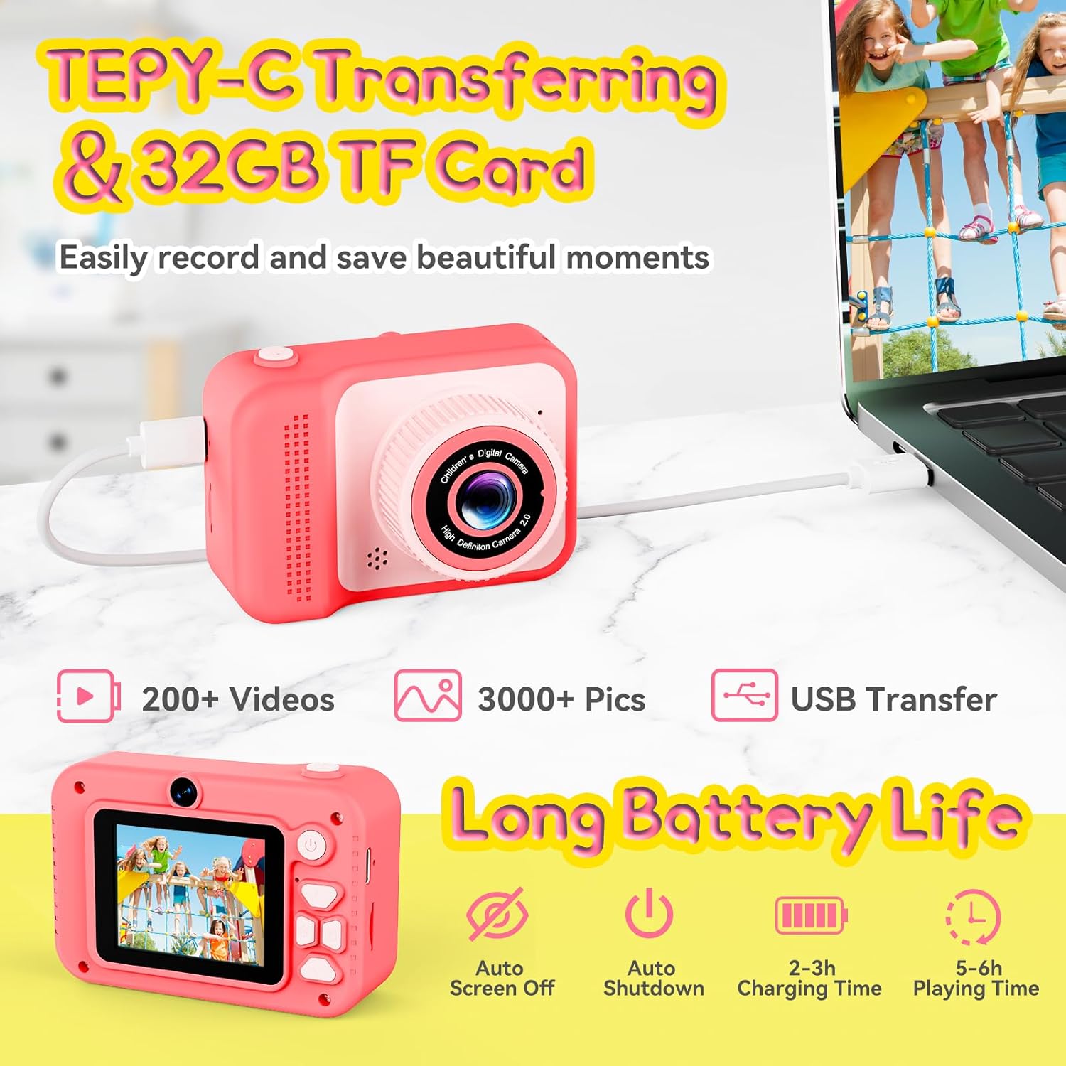 Kids Camera, 1080P Portable HD Digital Camera with 32G SD Card, Birthday Gifts for Girls 3 4 5+ Year Old
