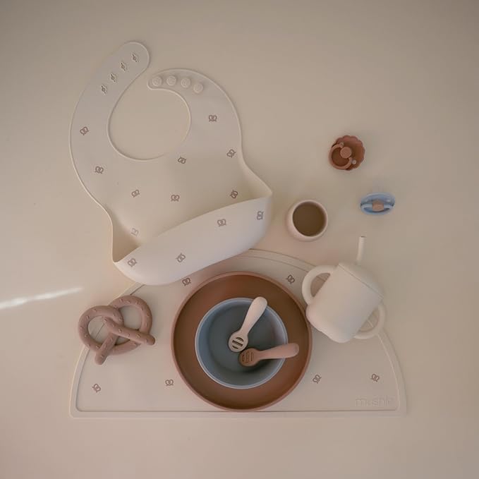 - Keep your little one feeling comfy and clean with our fun-loving collection of silicone bibs. Designed in Sweden, mushie bibs feature classic patterns capturing a look that's both timeless and elegant. Our timeless colors and patterns pair well with mushie silicone placemats, splat mats and tableware.