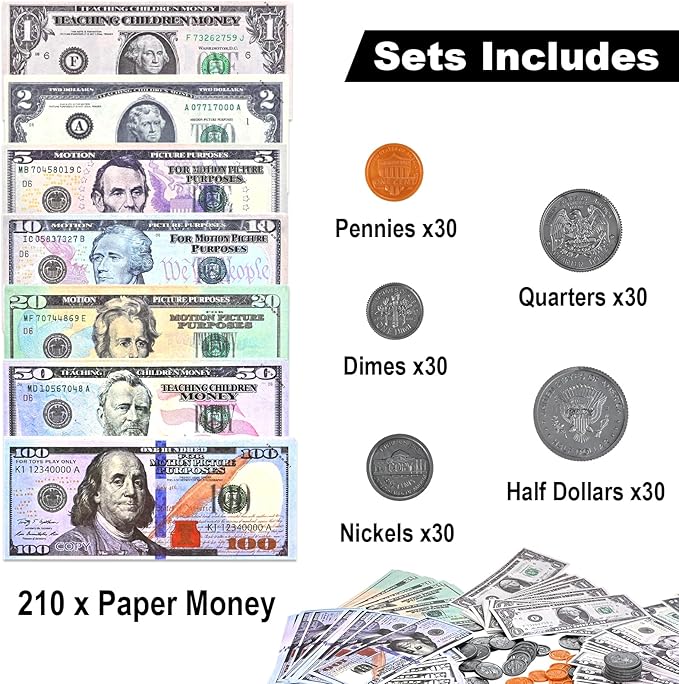 - 【Educational and Fun】: Our toy set encourages children to understand the concept of money and its value. It helps with early financial management and improves basic counting skills. It is a valuable learning tool that fosters creativity and imagination while providing countless hours of fun.