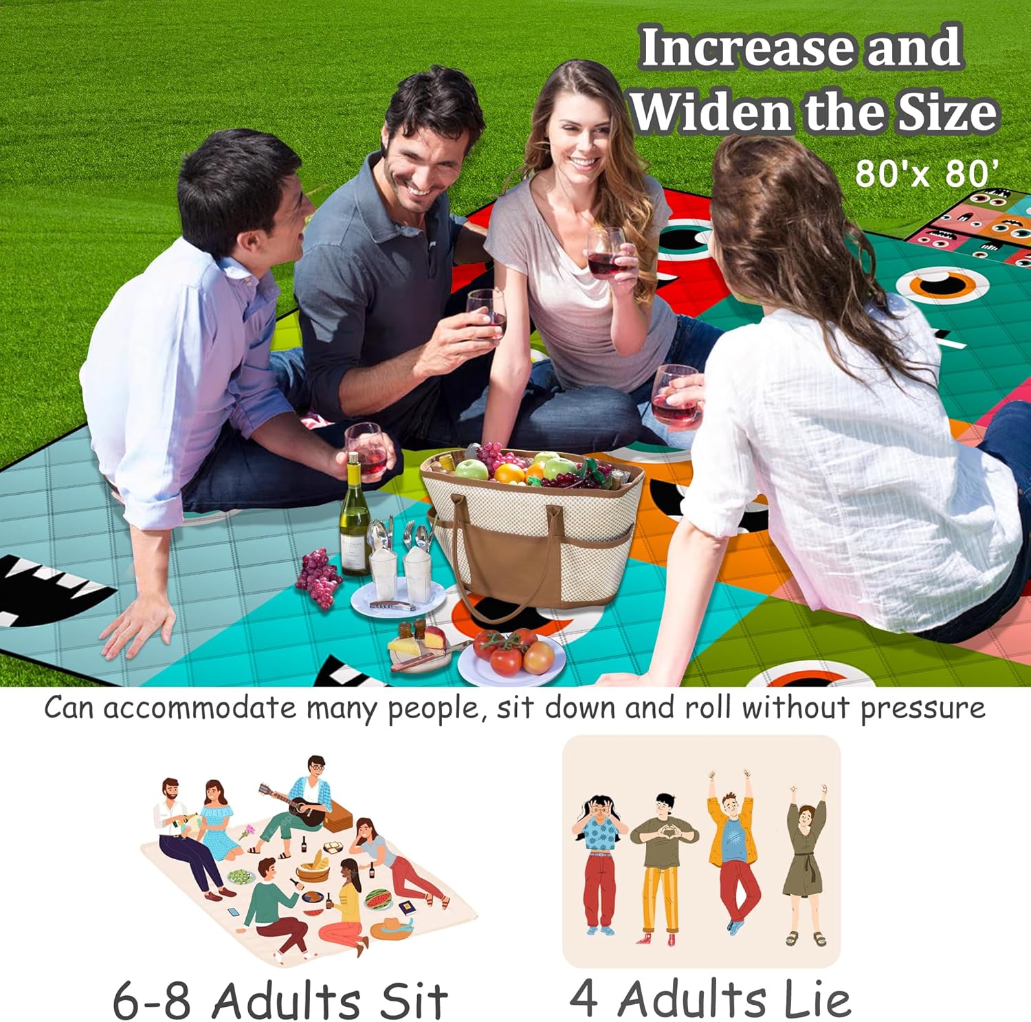 - 【🍕🍕🍿🍸🍹Larger and Thicker Design】This waterproof blanket can accommodate 6-8 people and can be used as a beach blanket,It create a designated space for family and friends to gather, eat together, play games, or simply enjoy each other's outdoors. They promote a sense of togetherness and make outdoor experiences more memorable and comfortable.