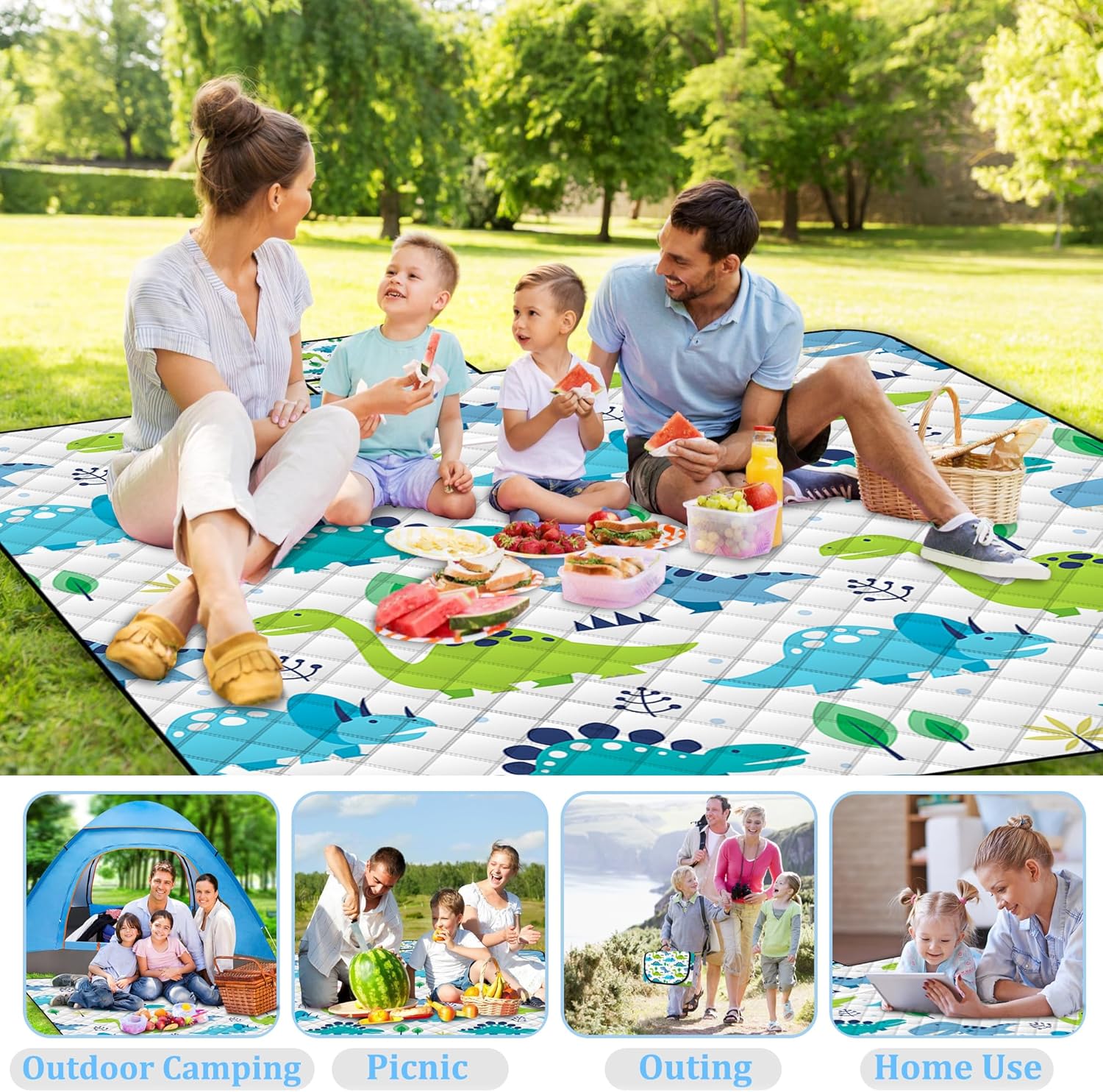 Extra Large Picnic Blanket Waterproof,80"x 80"Foldable Machine Washable Beach Blanket,Outdoor Blanket for 6-8 Adults,Picnic Mat Suitable for Indoor Crawling,Park Beach,Camping,Hiking,Travel(Dinosaur)