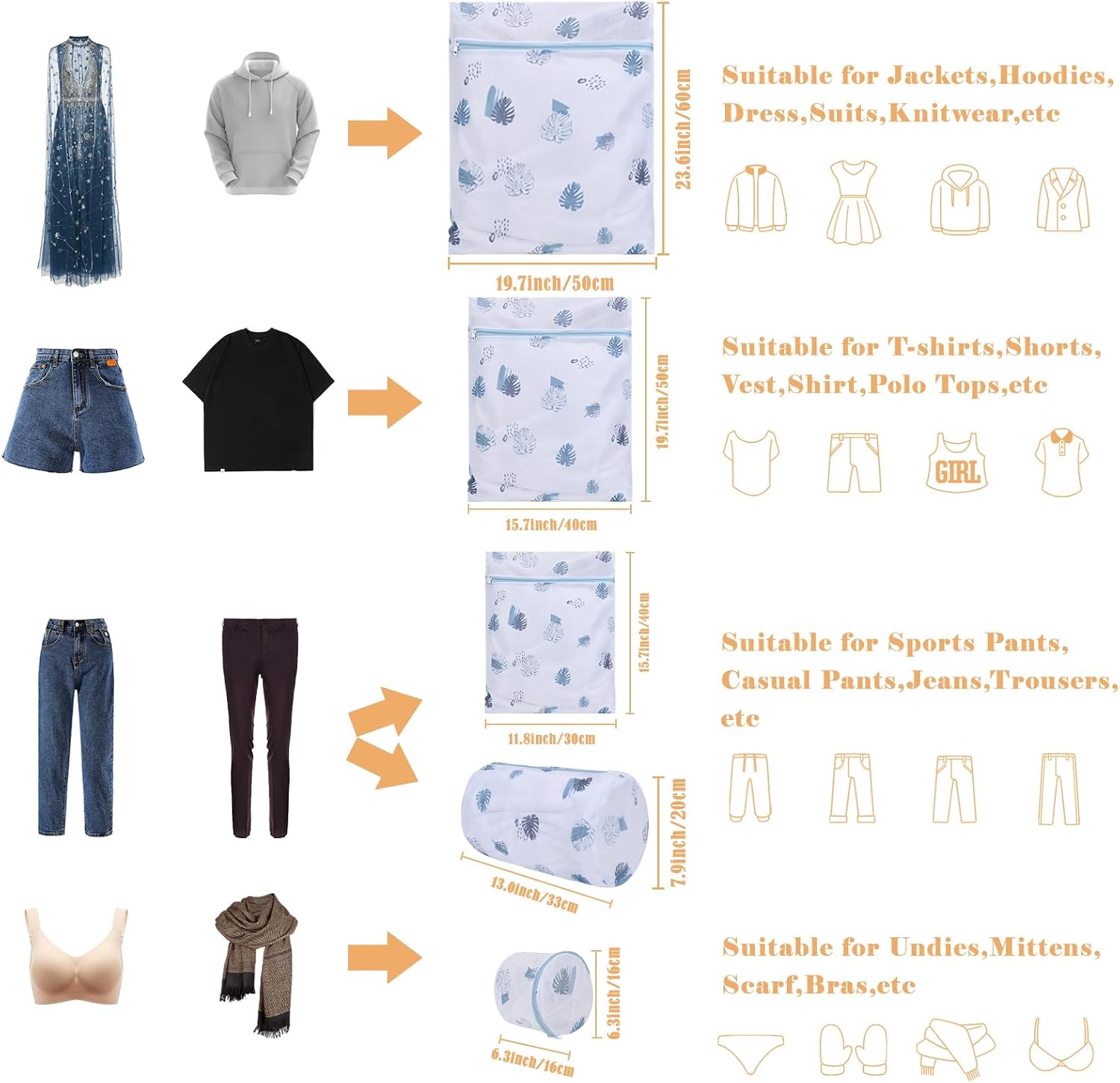 - Perfect Combination: 5 sets of laundry mesh bags in different sizes meet all your washing needs; Great for delicates, lingerie, sweaters, knits, bras, underwear, active wear and baby clothes etc; Also helpful for organizing luggage when traveling