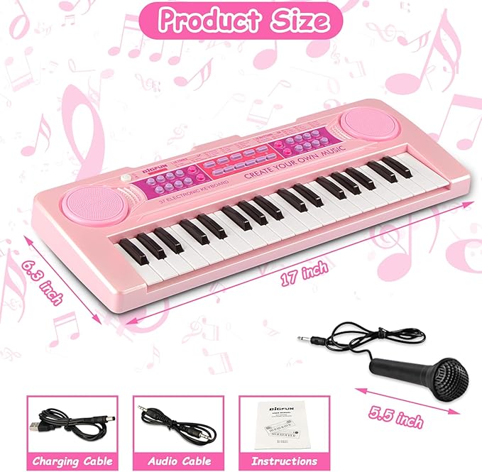 Kids Piano Keyboard Toys, 37 Keys Music Keyboard Piano for Kids with Microphone, Learning Educational Toddler Keyboard Toys for Kids Ages 3-8 (Pink)