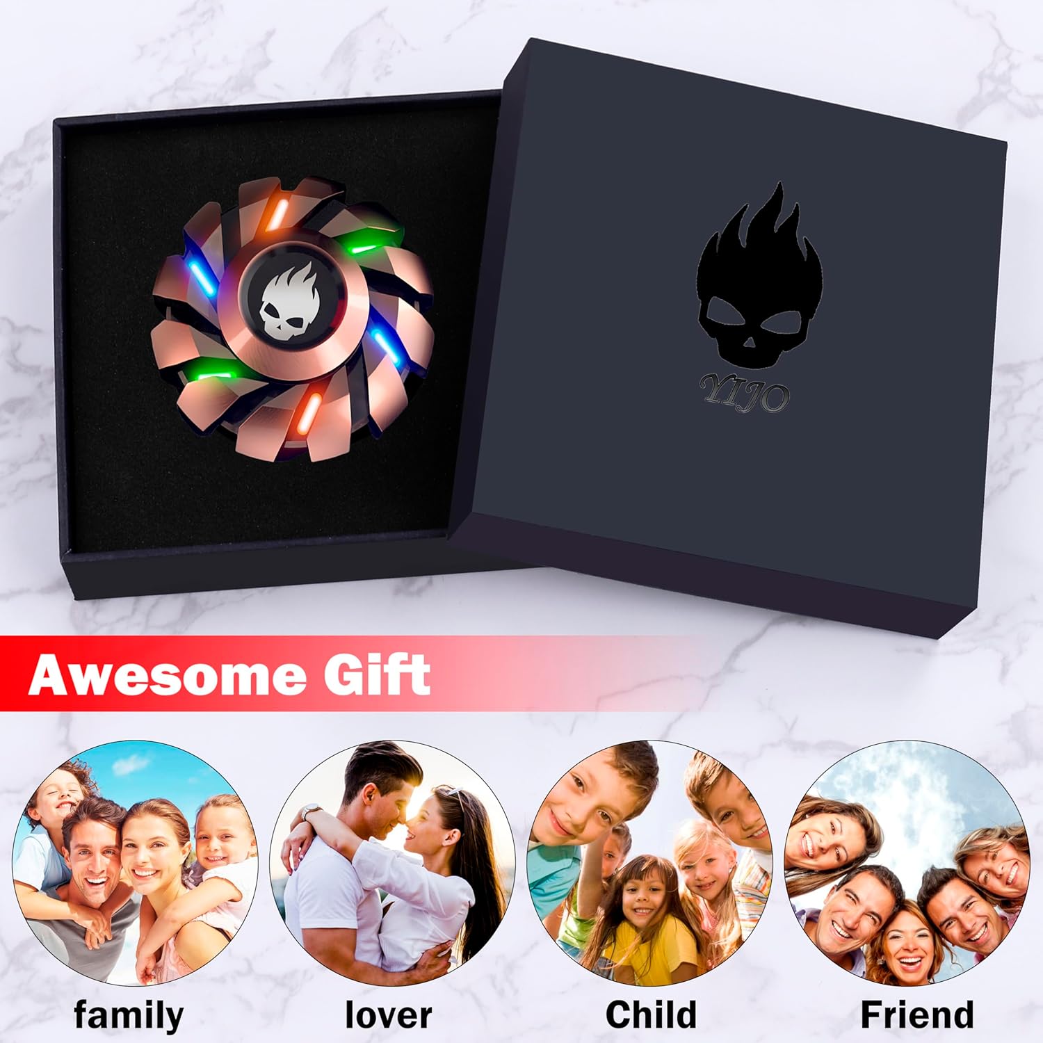 - ใ๐ ๐๐ง๐๐ฒ ๐ ๐ข๐๐ ๐๐ญ ๐๐ฉ๐ข๐ง๐ง๐๐ซ๐ฌใ: YIJO metal gear fidget spinner is designed with skull symbol in cool fidget spinners center, it looks like an UFO from side. Strong light, especially UV light, could light up fidget spinner glow in the dark.