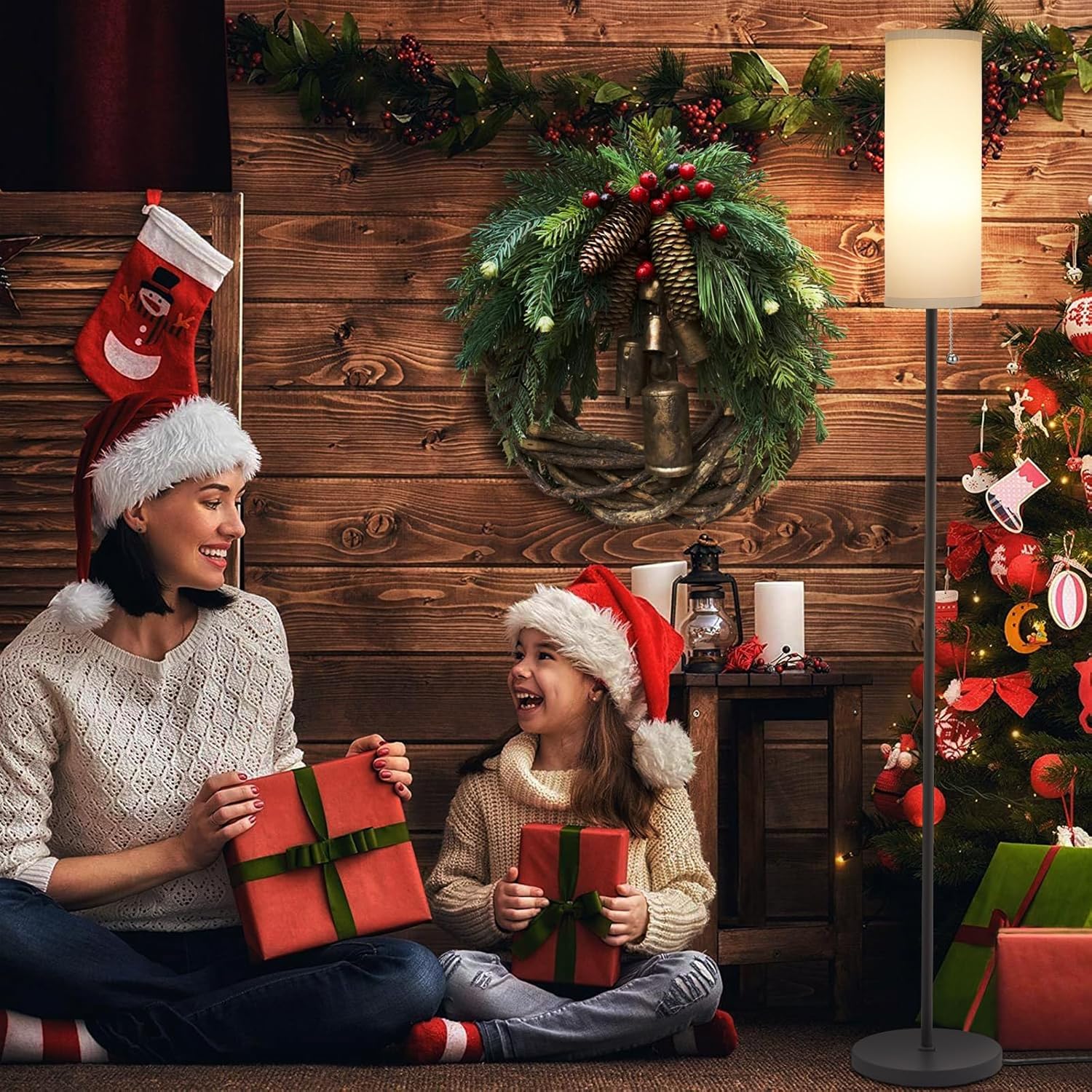 Ambimall Floor Lamp for Living Room with 3 Color Temperatures Bulb, 64" Standing lamp with Linen lampshade for Bedroom, Minimalist Pole Lamp, Grey Shade & Black Pole