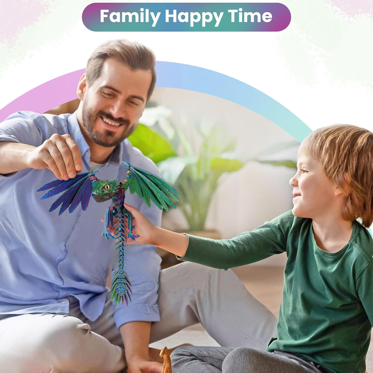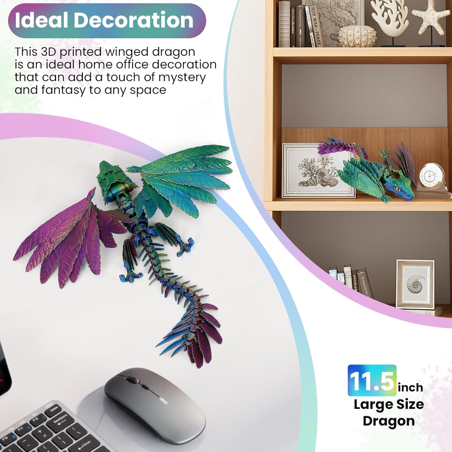 3D Printed Dragon with Wings, Feathered Wyvern Dragon,Full Articulated Crystal Dragon Fidget,Realistic Large Pet Dragon, Flexible Shoulder Dragon Stuff, 3D Printed Animals Toy.