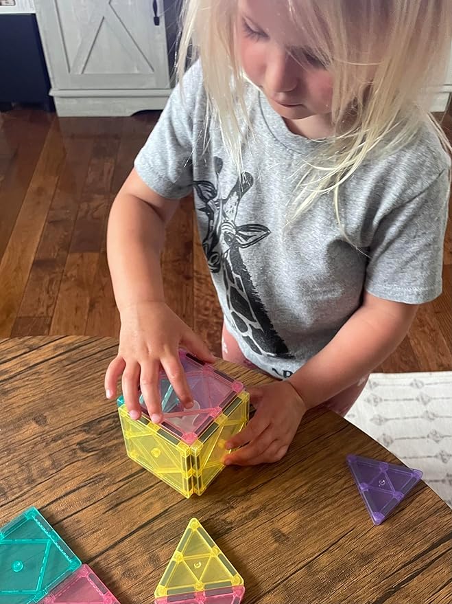 CreateOn Crayola Magnetic Tiles, Building Set for Kids, Magnetic Building Toys for Kids, STEM Travel, Gift for Boys and Girls Ages 3+, 14-Piece Set (Pastel)