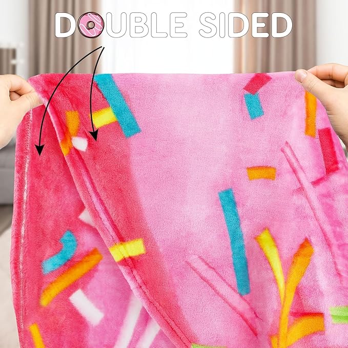 - THE TASTIEST-LOOKING BLANKET: Have you ever wanted to be a human version of your favorite food? This realistically designed pink glazed donut blanket has a double-sided print, making it look just like a yummy donut. Your friends and family will surely want to get one for themselves when they see you wrapped up in this comfy blanket.